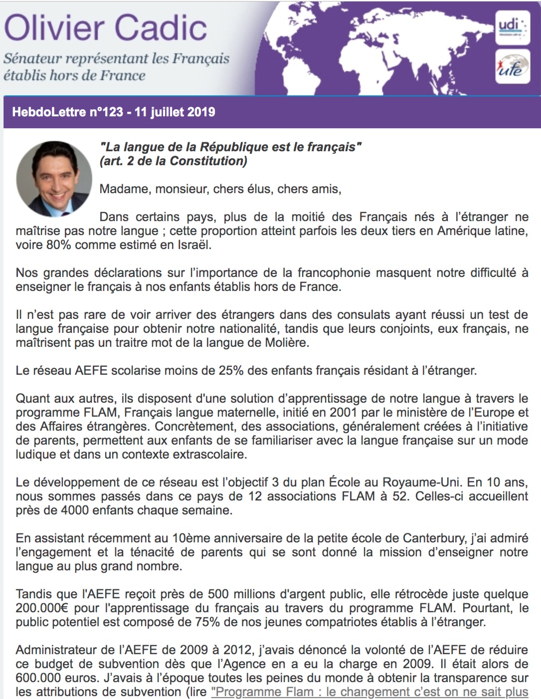 Lire : l’HEBDOLETTRE n°123 – 11 juillet 2019