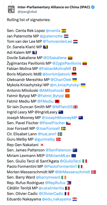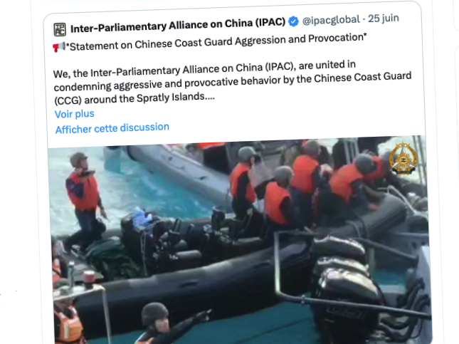 25 juin 2024 – Nous, l’Alliance interparlementaire sur la Chine (IPAC), sommes unis pour condamner le comportement agressif et provocateur de la Garde côtière chinoise (CCG) autour des îles Spratleys.