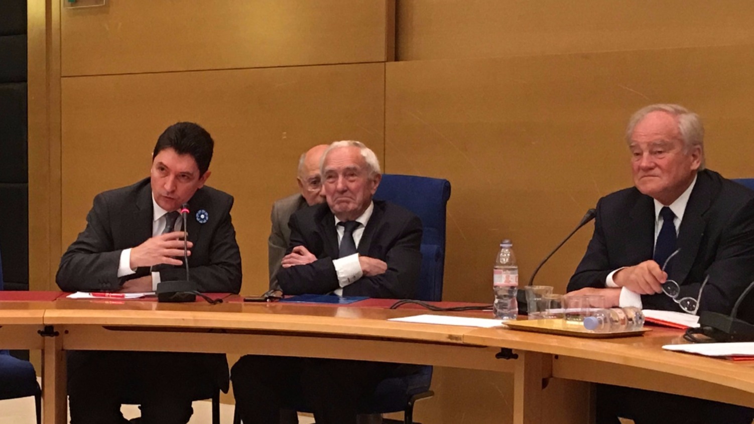 (g. à d.) Olivier Cadic et Rachel Mazuir, rapporteurs ; Christian Cambon, président de la commission.