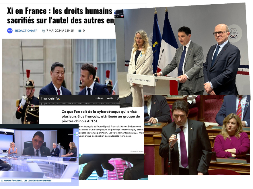 Le Point (07 mai 2024) : “Visite de Xi Jinping : colère des sept élus hackés par les Chinois”. Lien