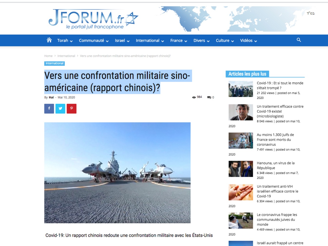 Lire l’article Vers une confrontation militaire sino-américaine (rapport chinois)? publié le 10 mai par Jforum
