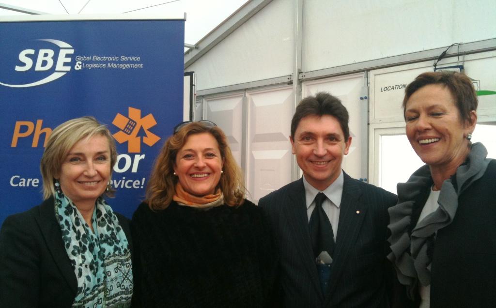 (de g. à d.) Catherine Rabet, consul adjointe et Véronique Révington, chargée de mission du plan Emploi, Olivier Cadic et Catherine Fournier, devant le stand de SBE Ltd, principal employeur d’Ashford