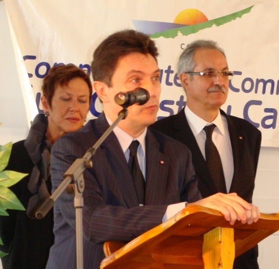 « La mission du plan Emploi est de contribuer à la réduction du chômage en France. » déclare Olivier Cadic, entre Catherine Fournier, maire de Fréthun, et Richard Gosse