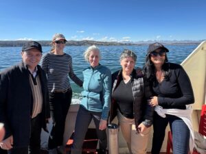 Arrivé à La Paz dans la nuit, Hélène Roos, ambassadrice de France, nous a emmené de bon matin au lac Titicaca, en compagnie de Martine Vellard, attachée de sécurité intérieure.
