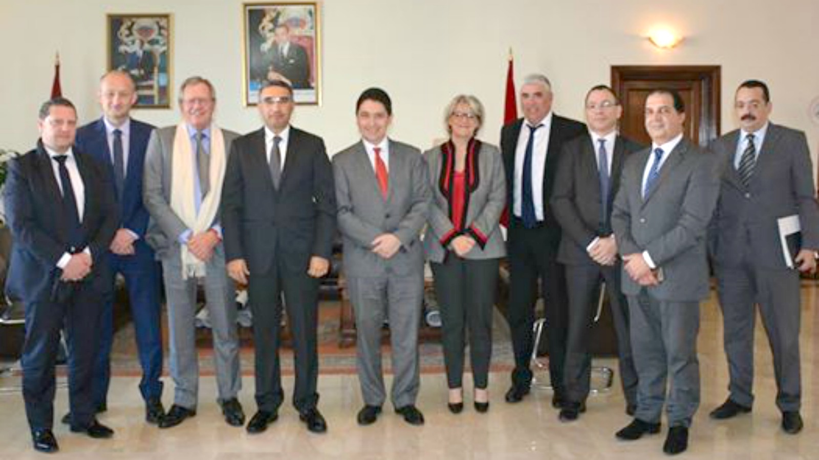 (g. à d.) les membres de la CFCIM : Philippe Confais, DG ; Georges Benhaïm, 1er vice-pdt ; Philippe Klein, président ; Olivier Cadic ; Bernard Digoit, ex-président ; Franck Dautria, vice-pdt ; Pascal Capdevielle, délégué régional ; Khalid Idrissi, directeur.