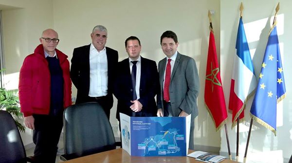 (g. à d.) Xavier Guy-Moyat, délégué UDI Casablanca ; Olivier Cadic ; Didier Gambino, DG de Élément13 ; Pascal Capdevielle, conseiller consulaire UDI Fès,