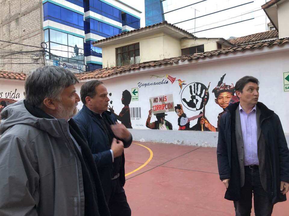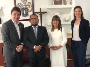 Entretien avec Omar Candia Aguilar, maire d’Arequipa, en compagnie de Véronica Estève, consule honoraire à Arequipa, de Catherine Clémente, directrice de l’école Saint-Exupéry et de Pauline Poutrain, chargée de projets à l’AFD.