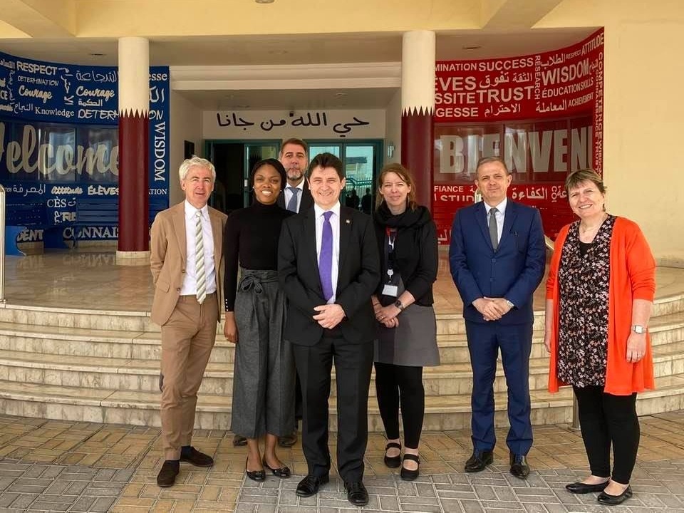 Visite du lycée franco-qatarien Voltaire en compagnie de Jean-Jacques Maizaud, consul général, Rosiane Houngbo Monteverde, conseillère consulaire et de Hadrien Laroche, conseiller culturel.