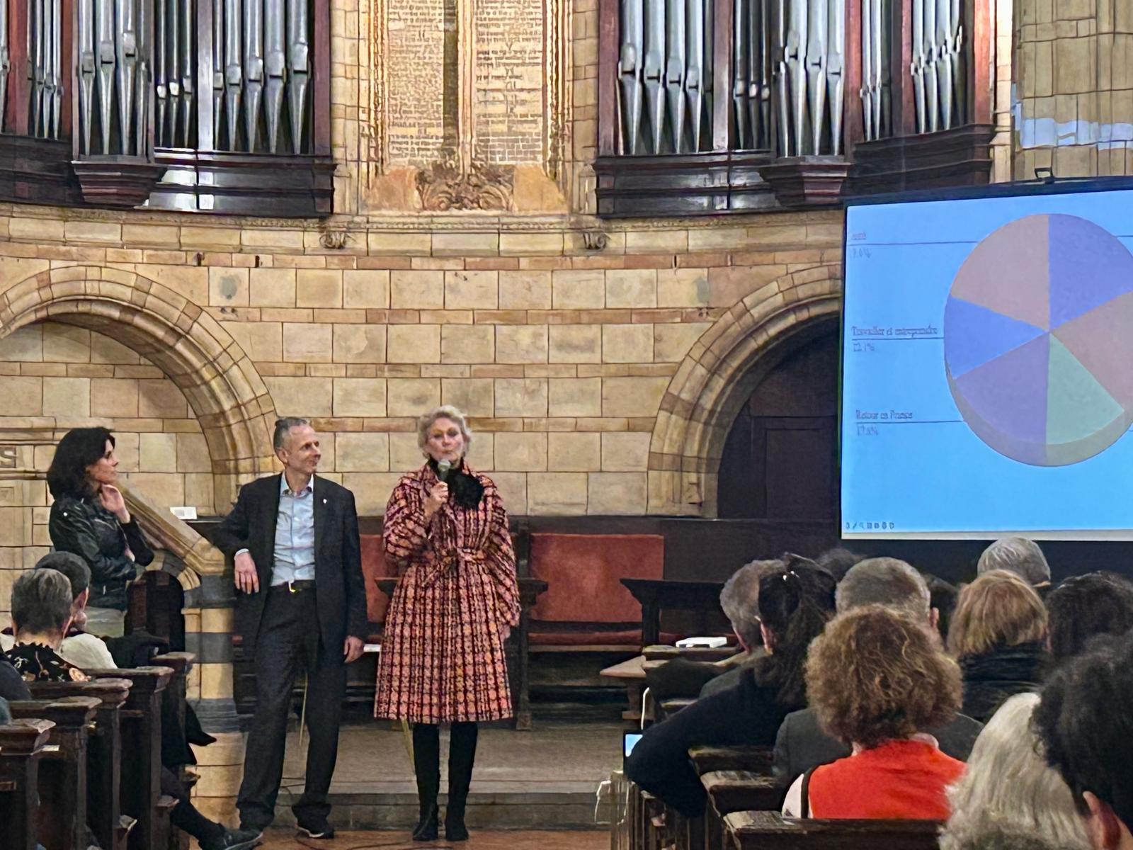 La présentation a été suivie d’un échange animé par Anne Vigouroux, avec la participation de Nicolas Hatton et Amelie Mallet, conseillers des Français de l’étranger pour Londres. Ils ont notamment abordé les droits post-Brexit, les avancées en matière de simplification administrative au consulat, ainsi que les difficultés actuelles des établissements scolaires français, confrontés aux effets conjugués du Brexit, de la TVA sur les frais de scolarité et des contraintes budgétaires : « aujourd’hui, tous nos établissements manquent d’élèves » !
