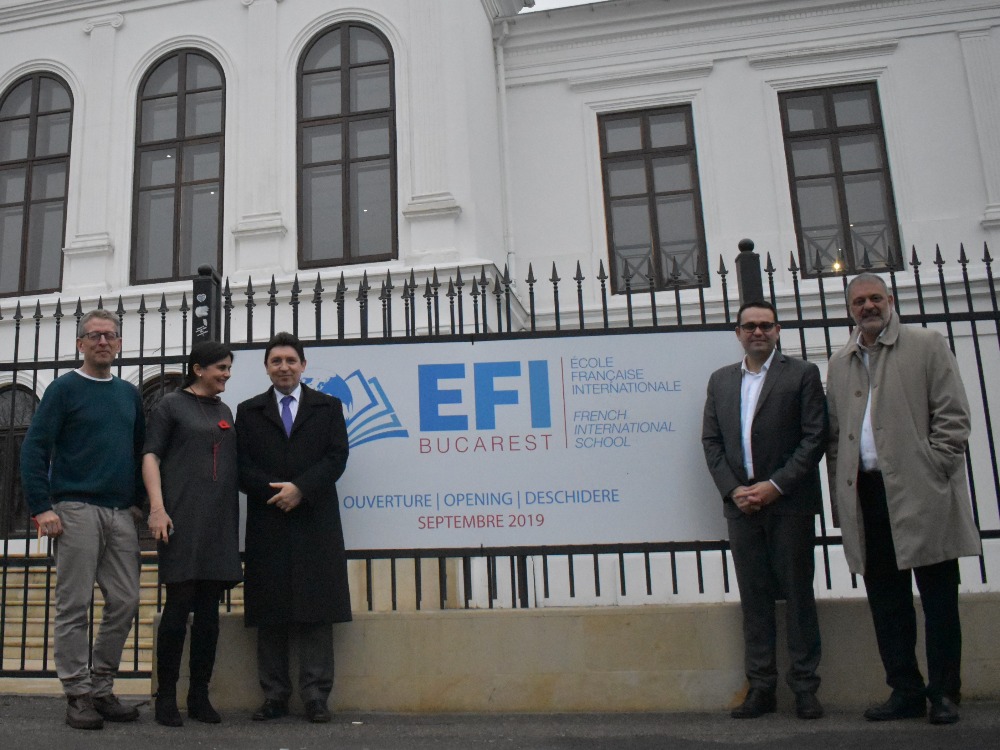 Jonathan Derai, président de l’EFI Bucarest et DG d’Odyssey, Corina Stanila, directrice exécutive de l’EFI Bucarest et Frédéric Baujon, chef d’établissement (et professeur en petite section) m’ont accueilli dans la nouvelle École française internationale de Bucarest qui a ouvert ses portes en septembre dernier.