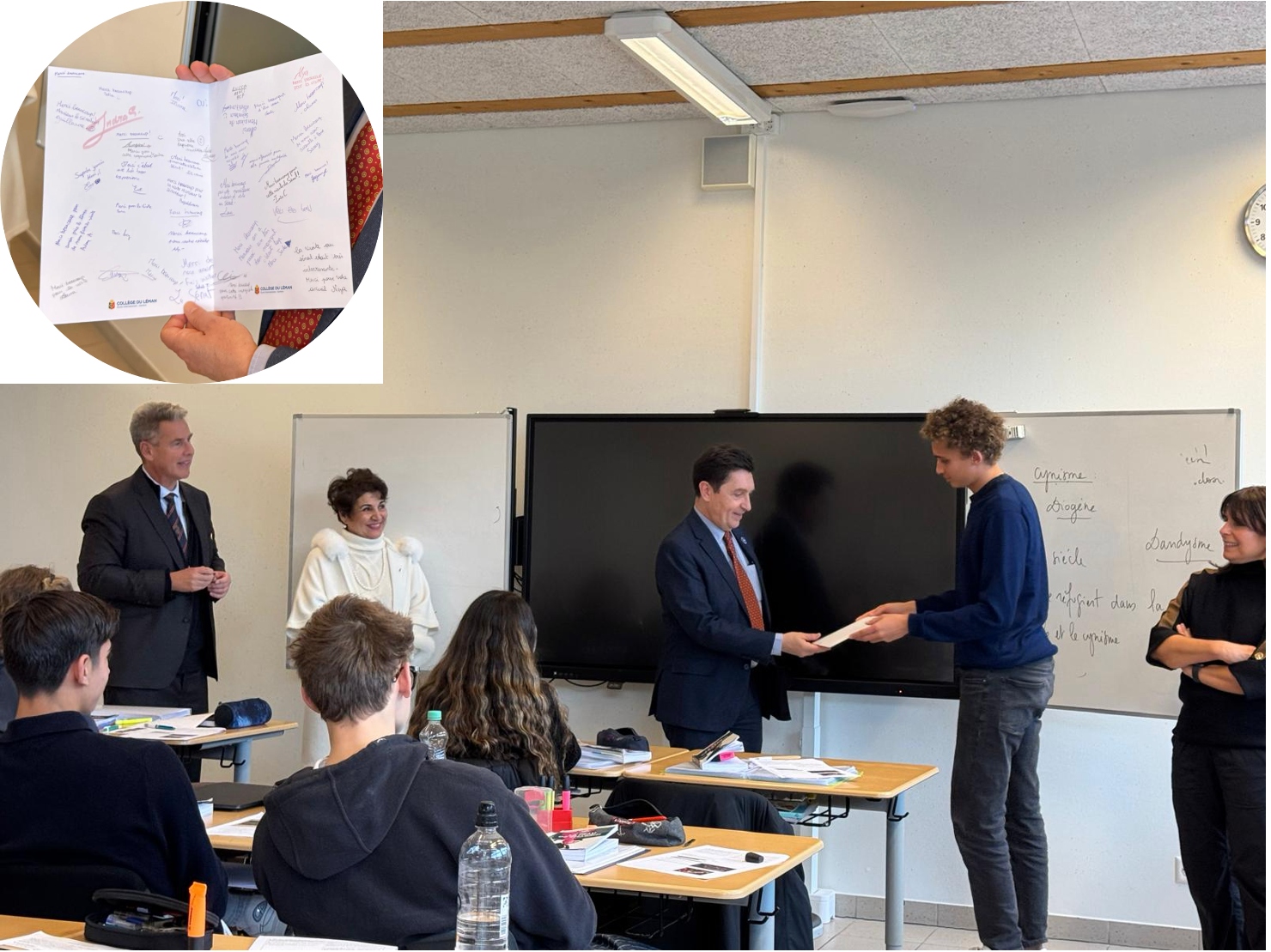 Accueilli par Emmanuel Coigny, en compagnie de Marie Wattez, présidente de la CCIFS, puis rejoints par Clément Leclerc, consul général à Genève, j’ai mesuré la richesse du dialogue engagé avec les élèves sur leur regard porté sur nos institutions.