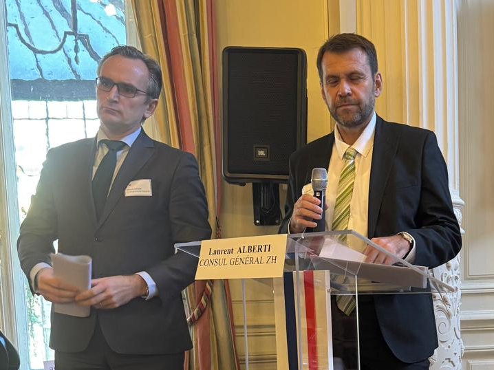Je remercie chaleureusement Marion Paradas pour son accueil à la Résidence, en présence du député Marc Ferracci et des consuls généraux, ainsi que Marie Wattez, présidente de la Chambre de commerce France-Suisse, pour son invitation à Genève.
