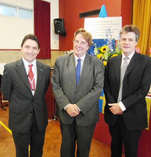 Olivier Cadic, Simon Sharron, directeur de l’Ecole Europeenne de Culham et Peter Ashbourne, Principal d’Europa School UK.
