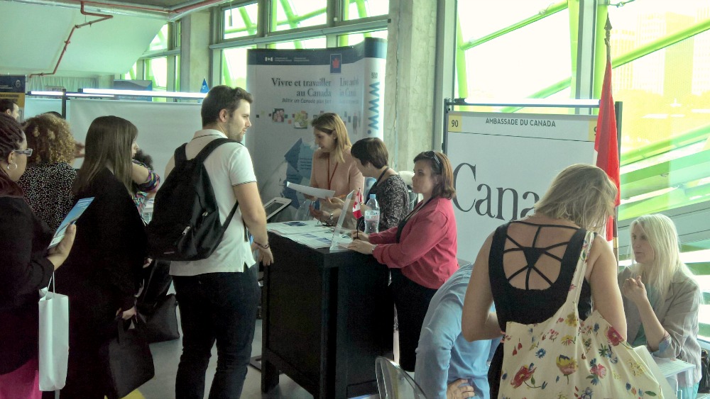 On se presse au portillon au pays de Trudeau. La queue ne tarit jamais devant le stand du Canada, où cinq conseillers enchaînent les entretiens.