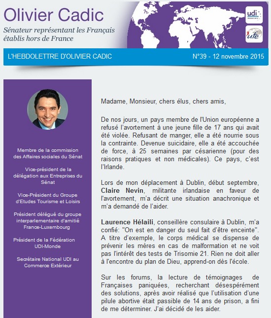 En 2015, Annick Billon m’avait apporté son concours pour offrir une tribune au Sénat à Claire Nevin, présidente du mouvement ROSA et Laurence Helaili, conseillère consulaire à Dublin.