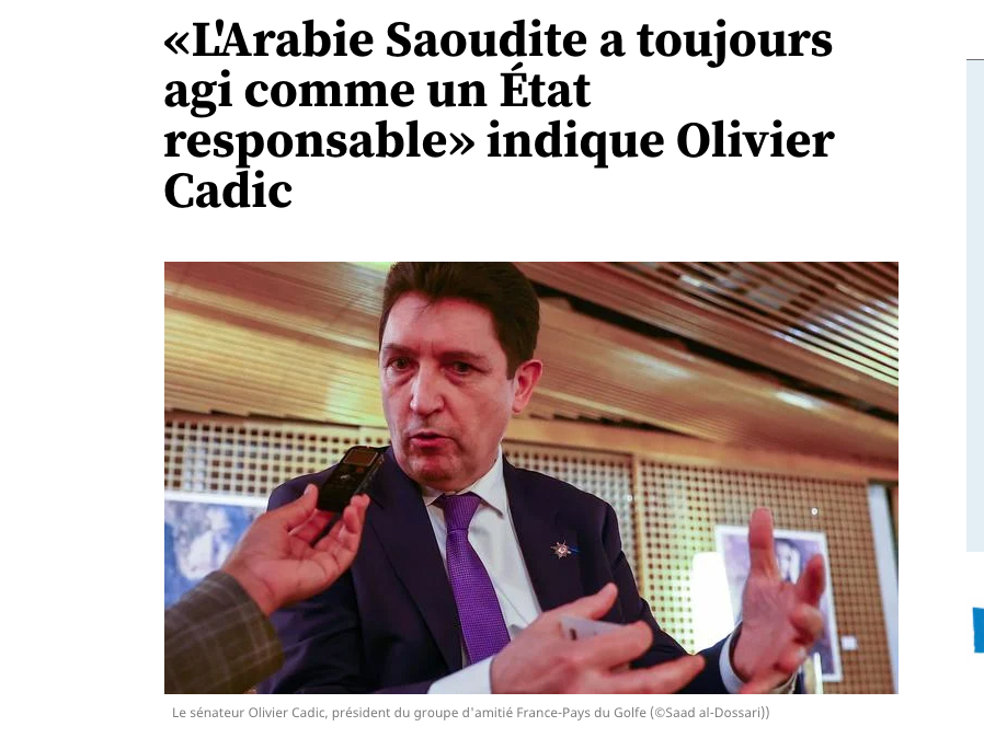 «L’Arabie Saoudite a toujours agi comme un État responsable», indique Olivier Cadic (01 mars 2022). Lire