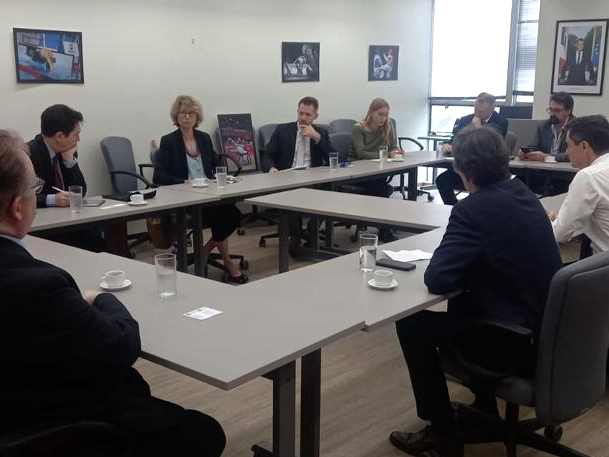 Paulo Florilo, président de la commission des relations internationales, m’a accueilli en compagnie de quatre collègues : Danilo Campetti, Thainara Faria, Gil Diniz et Mauro Bragatto, représentant toutes les tendances politiques de l’Assemblée.