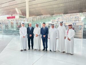 Visite de la Bibliothèque nationale du Qatar présidée par Dr Hamad Bin Abdulaziz Al-Kawari, en compagnie de Sheikh Ali bin Jassim Al-Thani, ambassadeur de l’État du Qatar en France et du conseiller culturel de l’ambassade de France.