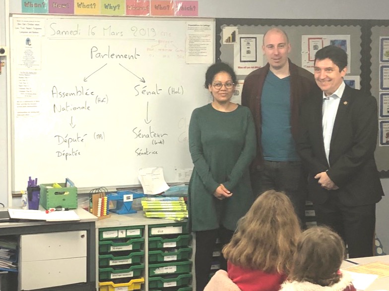 J’ai rappelé que l’objectif n°2 du plan École initial du Royaume-Uni visait à doubler le nombre d’écoles bilingues français-anglais.