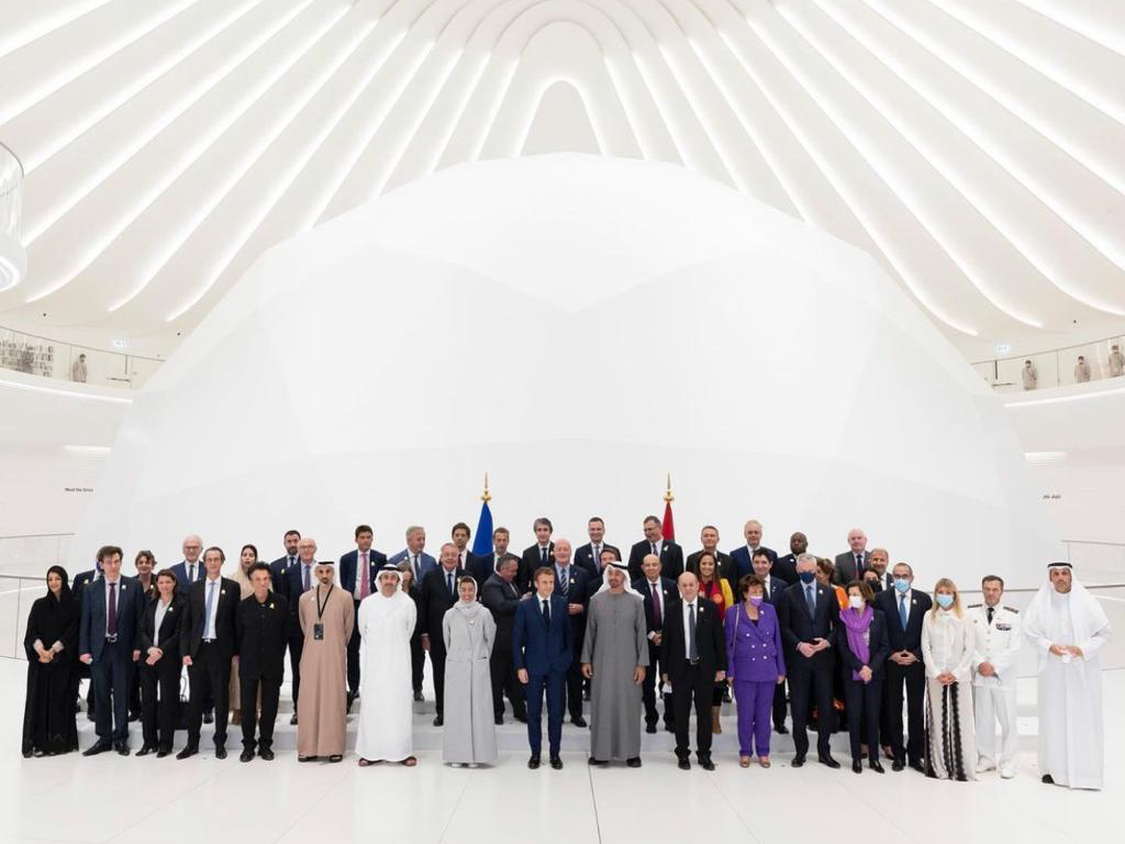 Après la présentation d’une quinzaine d’accords et de contrats déjà signés, photo officielle en présence du Président de la République, Emmanuel Macron et de S.A. Cheikh Mohamed bin Zayed Al Nahyan, Prince héritier de l’Émirat d’Abu Dhabi et vice-Commandant suprême des forces armées des Émirats arabes unis.