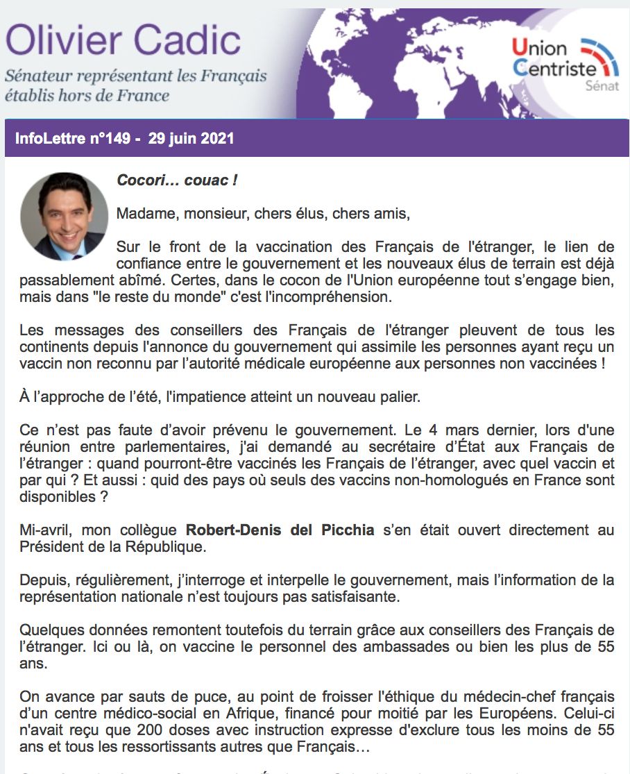 On peut le regretter : l’état d’urgence sanitaire impose une information renforcée. Chacun attend du gouvernement de la lisibilité à sa politique de vaccination pour favoriser la mobilité des Français de l’étranger. Découvrir l’InfoLettre n°149
