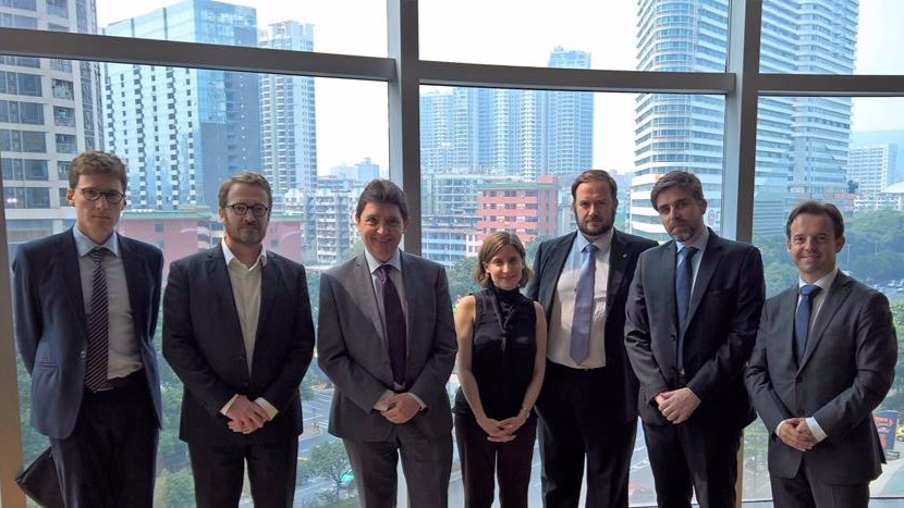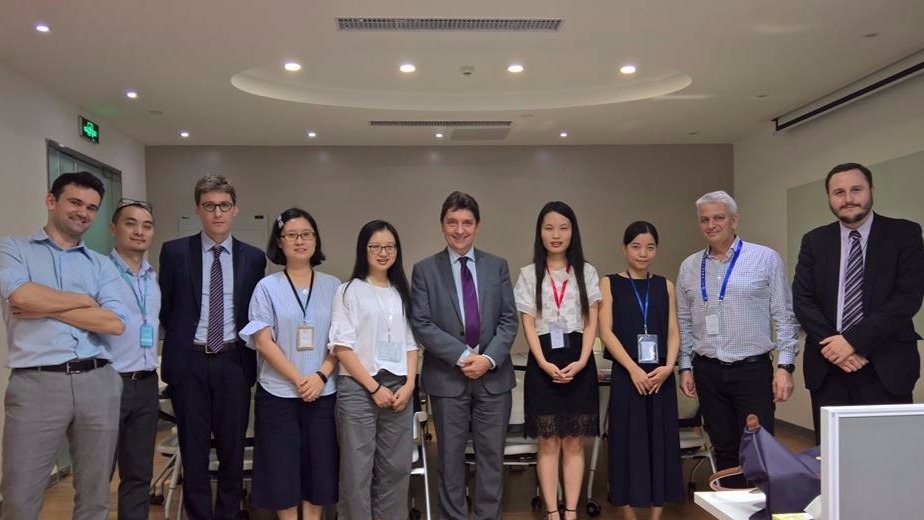 Visite du bureau de Canton de la Chambre de commerce et d’industrie France-Chine et entretien avec Alexandre Beaudoux, directeur, Paul-Francis Amiot et Stanley Chen, membres de son équipe.