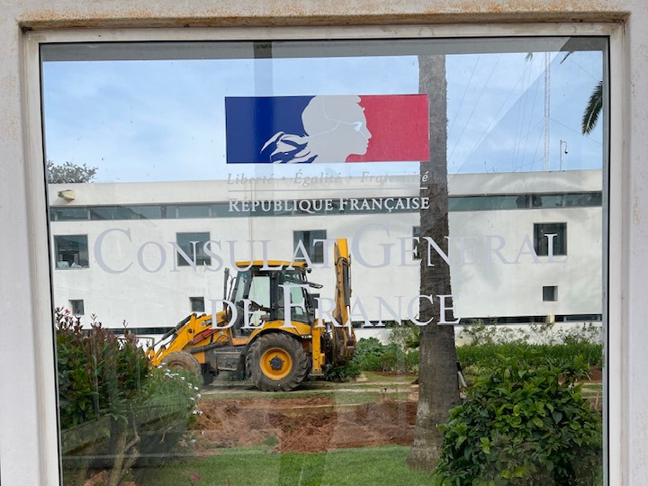 J’ai pu observer les travaux en cours dans l’emprise du consulat et apprécier le soin apporté pour déplacer les palmiers. + d’images